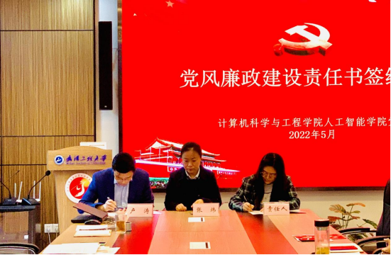 张炜、卢涛与学院教研室主任、党支部书记签订党风廉政建设责任书。
