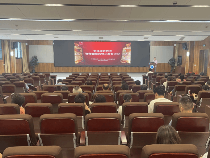 会上,学院全体教职工共同观看了党风廉政警示教育片《镜鉴家风》《剑指顽疾 砸局破圈》。