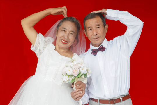 听说“寻真”暑期社会实践团免费为村里的老人拍摄了婚纱照