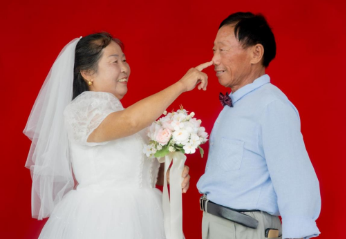听说“寻真”暑期社会实践团免费为村里的老人拍摄了婚纱照