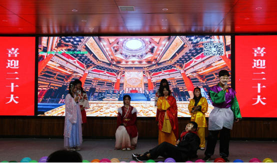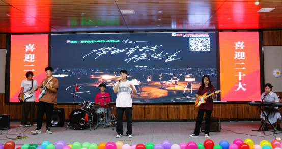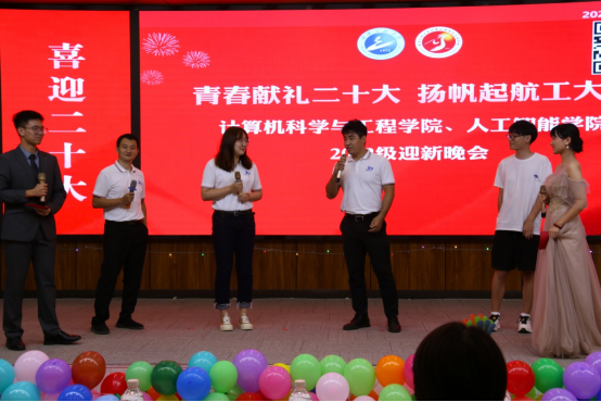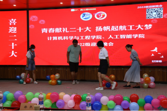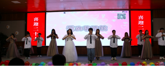 晚会设置了线上抽奖、师生互动游戏“倒着说”、“校情校史小问答”、“踩气球”等活动,同学们参与热情高涨,现场气氛热烈。