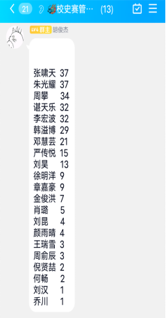 现场答题环节分为必答题、风险题和抢答题三部分,题型包括单项选择题、多项选择题和填空题。“争分夺秒”必答题展现出选手们对基础知识的储备量、“乘风破浪”风险题展现出选手们超群的记忆力、“眼疾手快”抢答题则是对选手思考速度以及反应能力的双重考验。经过层层选拔,2020软件工程1班朱光耀、2022级人工智能2班韩溢博和2021级计算机科学与技术4班严传悦三名选手脱颖而出,成功以高分抢占前三名。最终将由他们代表学院参加校赛。