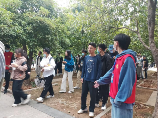 “我是志愿者,我要上!”“老师,我要去现场!”“小码农”们闻令而动,迅速集齐,积极参与到核酸检测工作中。在核酸检测现场积极引导同学有序排队,提醒同学佩戴口罩,协助扫码登记,圆满地完成了核酸检测志愿服务工作。