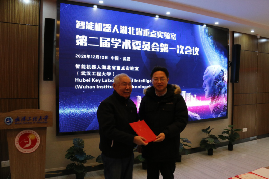 智能机器人湖北省重点实验室主任张彦铎教授为学术委员会颁发聘书。
