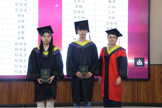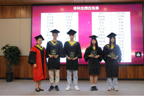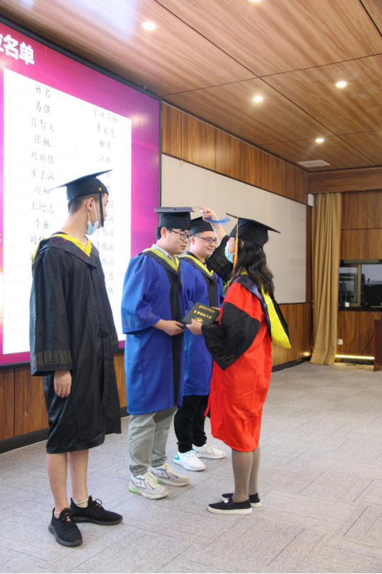 本科生学业导师和研究生导师为毕业生授位拨穗,颁发毕业证书,并合影留念。
