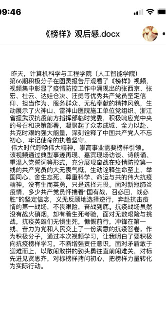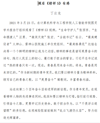 榜样事迹在师生中引起强烈反响。大家纷纷表示,要以榜样为镜,立足自身实际,发扬榜样精神,真正做到从思想上提高认识,从行动上转变作风,以学促做、以知促行,永葆初心,在学习、生活中争当榜样,做好表率。