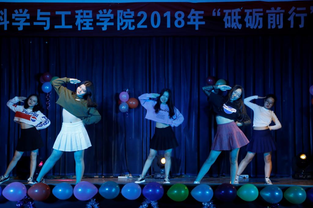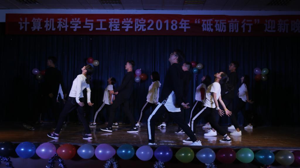 伯牙琴行乐队热情洋溢的4人弹唱《光年之外》和《我在人民广场吃炸鸡》中拉开了晚会的序幕,有节奏的鼓点将本次晚会主题“砥砺前行”的气势展现得淋漓尽致。文艺部的舞蹈《燃烧我的卡路里》大有张扬青春的势头。2018级新生带来的小品《上课》用幽默的方式从侧面揭示了老员工活的状态理应是学无止境,号召工大学子们积极向上,争做二十一世纪的好青年、新青年。新生以滑稽和大胆的舞步重新定义了《咋了爸爸》,这样的突破和反转引得现场掌声连连尖叫不断。