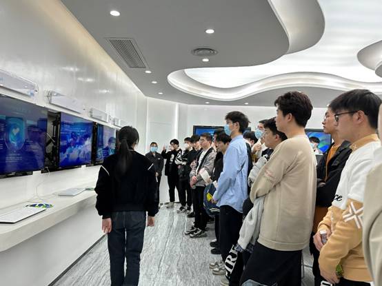 在参观过程中,同学们与深信服的工程师们进行了面对面交流。有的同学咨询深信服的招聘要求和工作内容;有的同学询问应聘网络安全公司实习岗位应具备的条件;有的同学与工程师探讨自己现阶段需要加强的能力及个人优势等问题。现场气氛轻松和谐,同学们的疑惑都得到了解答,对专业知识有了更深刻的理解,进一步明确了自己的定位和学习目标。