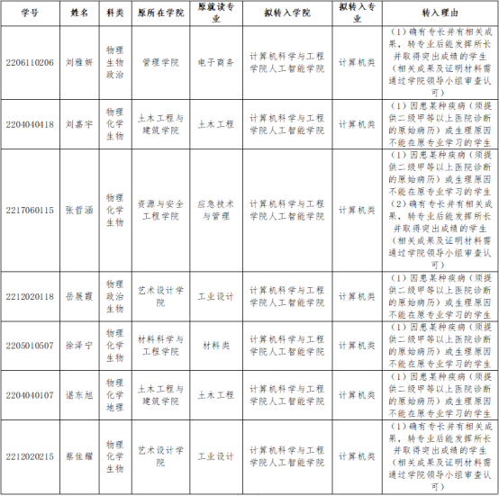 根据《365英国上市普通本科生转专业实施办法》(武工大教发﹝2022﹞4号)文件规定和学校教务处《关于做好2022-2023学年第一学期普通本科生转专业工作的通知》的有关要求,经公司领导小组对申报材料的审查以及申请人的综合考核,拟同意符合相关文件及通知精神的7名员工的转专业申请。现将名单予以公示(按姓氏笔画排序),公示期为2022年12月9日-2022年12月15日,如有异议,请于2022年12月15日中午12点前向公司员工工作办公室反应,联系电话:027-87992007。
