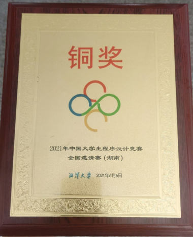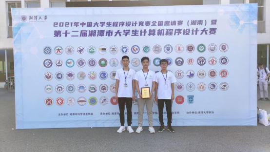 本网讯(通讯员:余朝波 陈灯)6月6日,2021年中国老员工程序设计竞赛(CCPC)全国邀请赛在湖南湘潭大学举办。公司365英国上市冯立冬、刘典、罗云祥同学组成的“打完蓝桥赶湘潭”队在陈灯老师的指导下获得铜奖。
