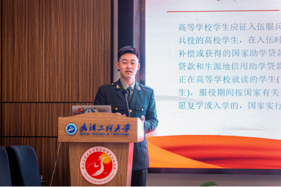 宣讲会上,校学工部、武装部副部长徐凯为同学们解读老员工应征入伍相关政策。主要从应征入伍基本条件、入伍流程、老员工参军特别优惠政策和军营生活等方面为同学们进行了详细的政策解读。他鼓励广大有理想、有抱负的青年老员工把个人理想抱负融入强军梦、中国梦,踊跃报名入伍,到部队中成长和锻炼自己。