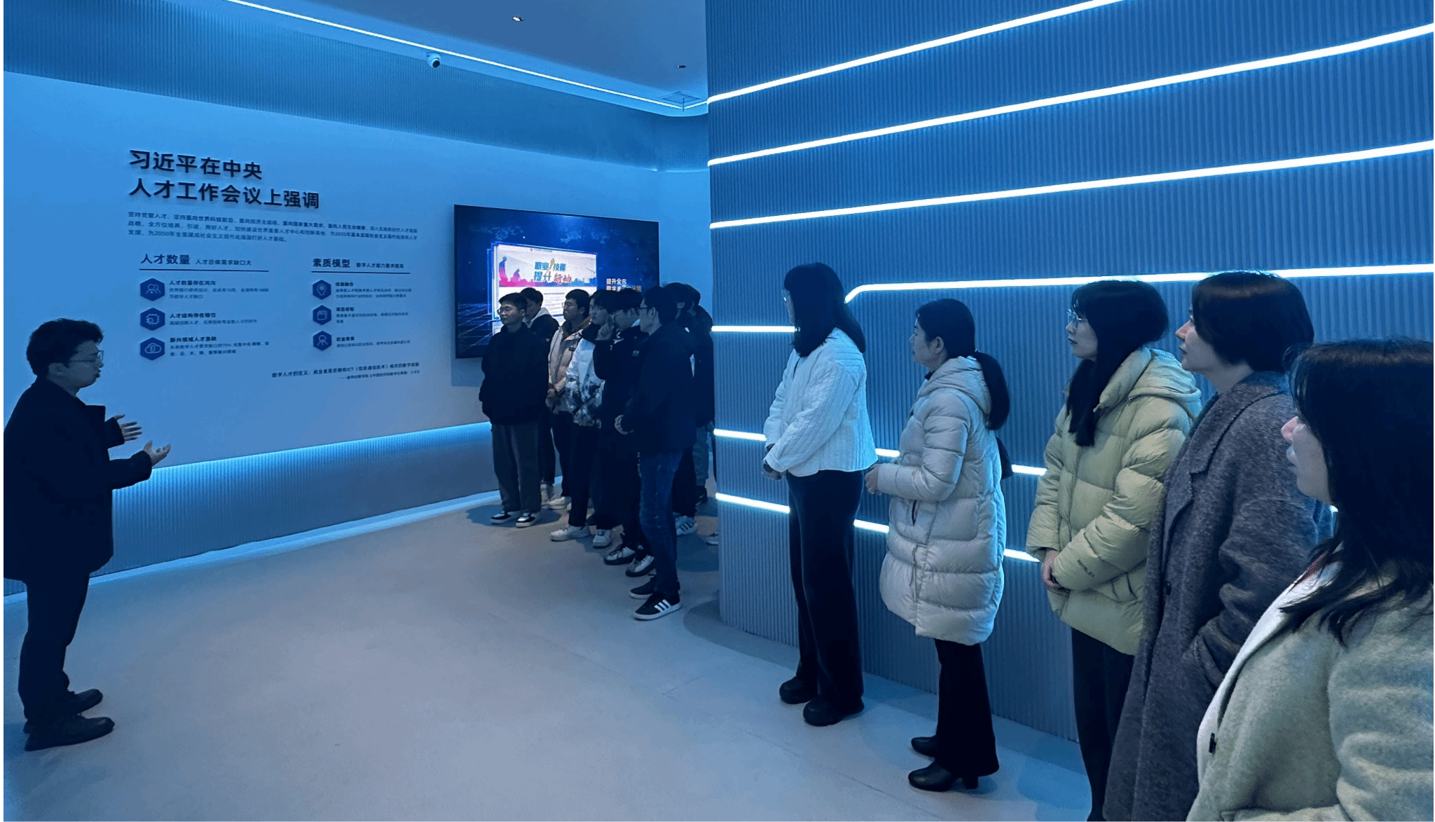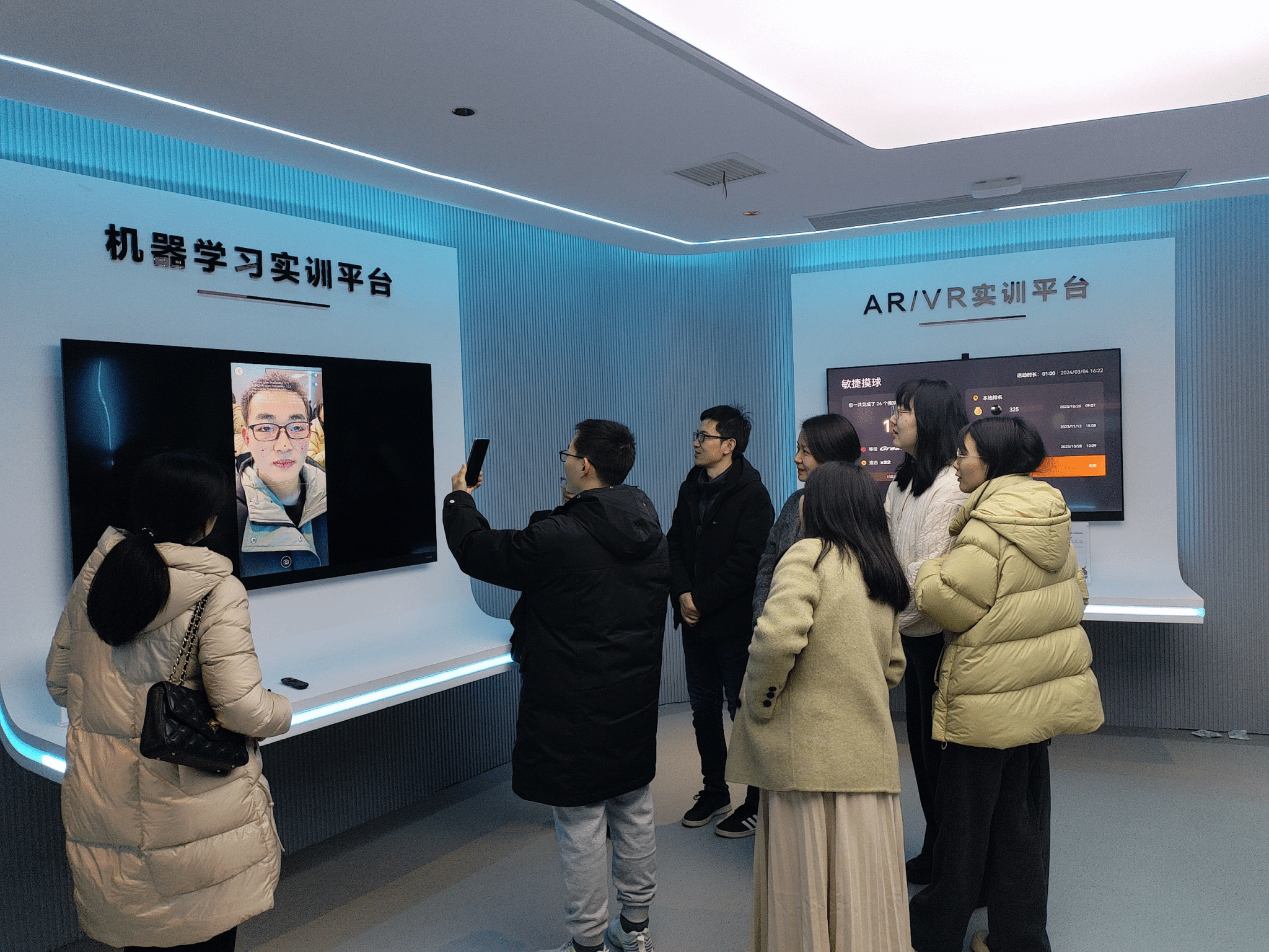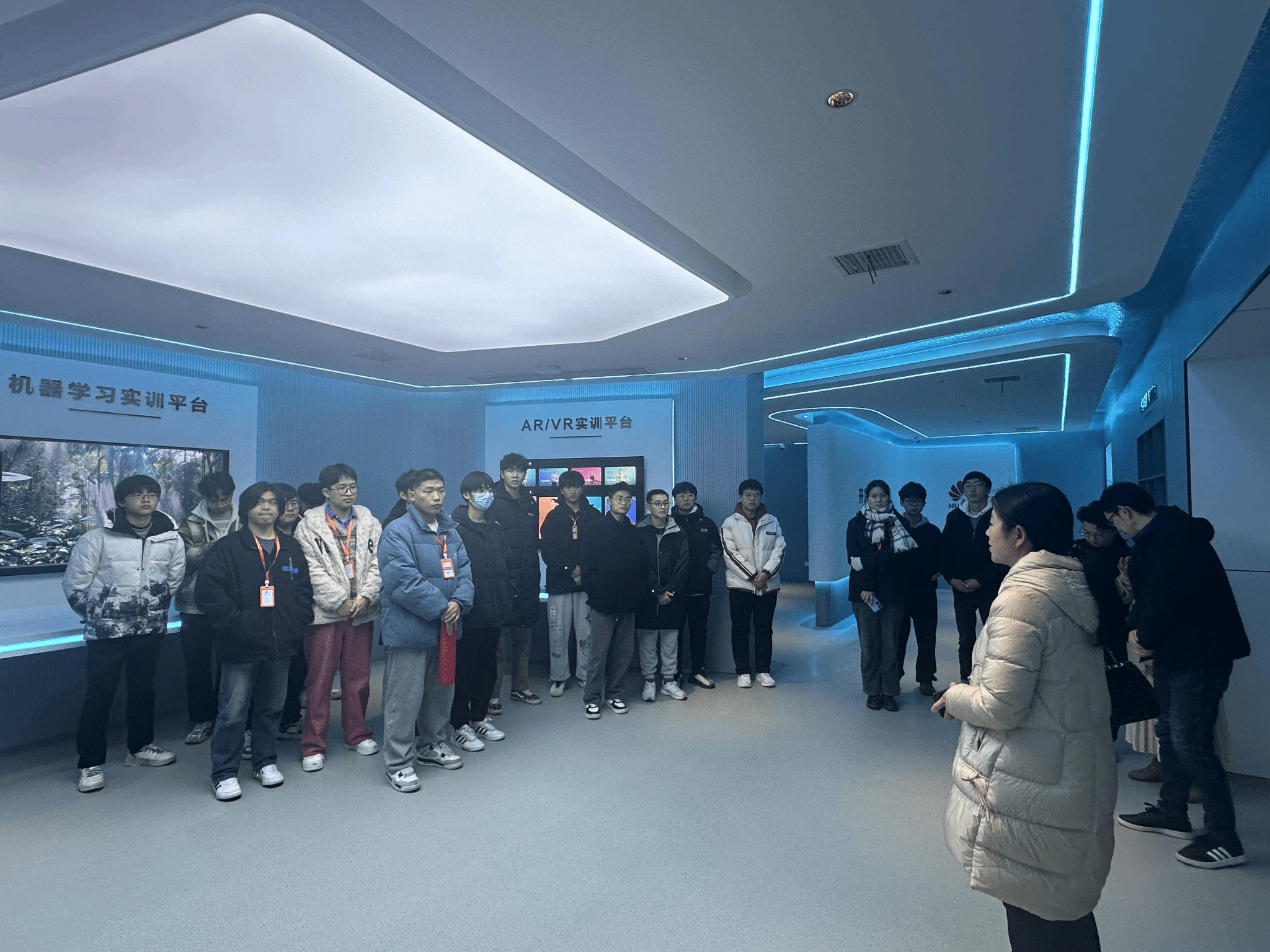 活动开始,全体参加人员参观了武汉首个数字技能全域性实训中心—武汉数字人才实训基地,深入了解了其在网络通信、网络安全、云计算、大数据、鸿蒙、人工智能等方面的最新研究进展和人才培养经验,体验了数字城市建设支持所需的机器学习、AR/VR等多个实训平台。