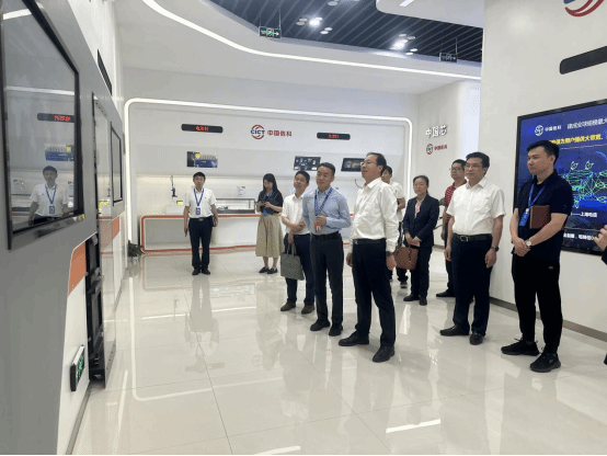 马小龙一行在姚全锋的带领下参观了烽火培训中心和中国信科集团展馆,了解公司发展历史、产业基地、科研成果和社会贡献等。