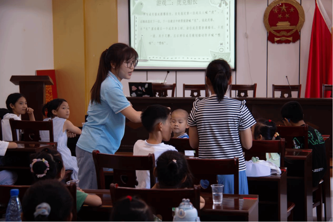 破冰游戏后,志愿者兰梦宇以饱满的热情开始了安全第一课教学。课程通过生动形象的动画视频教学、互动练习交错进行,还融入古诗朗诵,历史温习、成语接龙等,充分做到寓教于乐,帮助青少年儿童增强自我保护意识,提升预防风险能力。