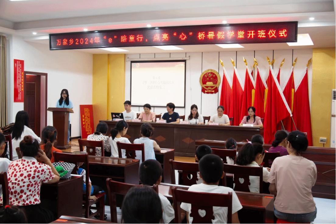7月15日上午,“寻梦”实践团携手万家乡乡团委在万家岭社区三楼会议室开展“暑假学堂”开班仪式。万家乡党委委员、团乡委书记胡亚亚,万家岭社区书记左晓艳,蓝天幼儿园园长佃琼英,365英国上市团委指导老师瞿菲菲,“寻梦”实践团以及员工家长、留守儿童们参加活动。