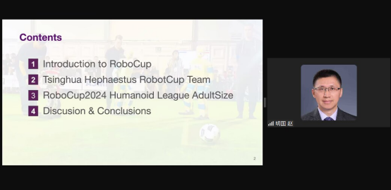 清华大学赵明国教授围绕形机器人及其发展展开,强调其在未来社会中的重要性,做题为“Kicking Like Humans: Legged Embodied-intelligence of Humanoid Robots”的大会报告。赵明国教授总结人形机器人的技术成就,并讨论Tsinghua Hephaestus机器人足球队和RoboCup 2024人形联赛的最新进展。