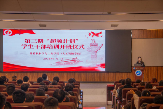 本网讯(通讯员 李振永 瞿菲菲)为进一步提升员工干部的政治素质和履职能力,11月11日,公司在图灵报告厅举行了第三期“超频计划”员工干部培训班开班仪式暨第一课。公司党委副书记、副经理李琪娜,校团委专职团干杨荣佳老师,2024级本科生辅导员熊川琦及全体参训学员参加本次活动,活动由团委指导老师瞿菲菲主持。