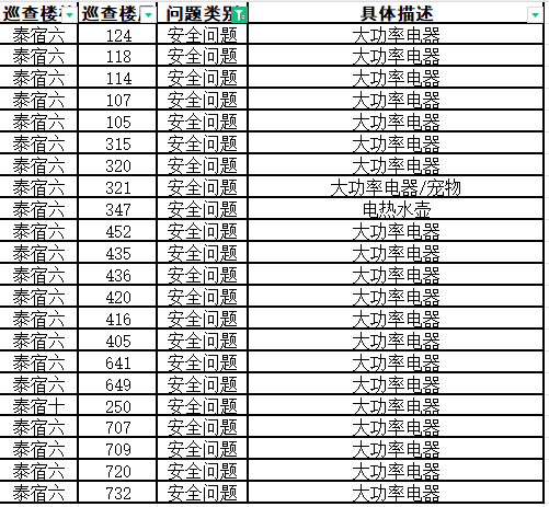 此次学院宿舍安全大检查,重点排查员工寝室内务、是否违规使用大功率电器,是否饲养宠物、消防通道是否畅通、是否存在电动自行车违规停放、进楼入户充电等相关情况。公司宿舍整体状况良好,通过检查,发现共有22间宿舍使用大功率吹风机、热水壶,检查人员及时收缴了违规电器,并对员工进行了安全教育。针对员工反馈的相关硬件设施问题进行记录和反馈,以保障员工的居住环境安全稳定。