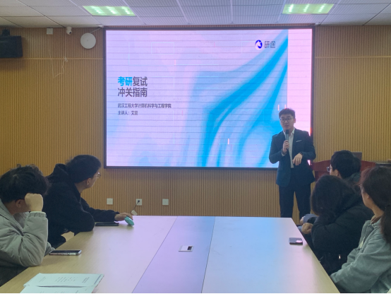 艾震老师讲解了复试流程,他详细阐述了复试的流程,针对关键时间节点进行了重点提醒。艾老师分享了精准的院校定位策略——“冲、稳、保”公式,传授了黄金48小时的捡漏技巧及有效的沟通话术,剖析了复试面试环节的应答逻辑,为同学们提供了极具实用性和针对性的指导。