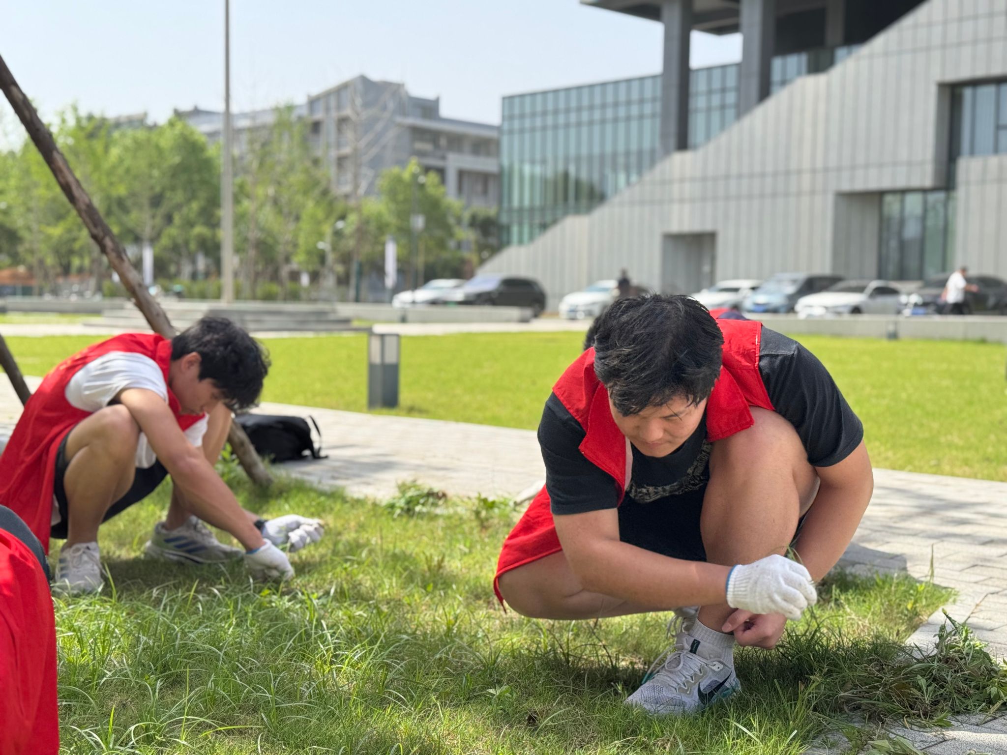 5月7日下午,30余名“小码农”身着红马甲,手持劳动工具,在后勤保障处专业人员的指导下,对校园绿化带、草坪等重点区域开展杂草清理工作。活动中,后勤工作人员现场示范除草技巧,讲解植被养护知识,员工们分工协作、干劲十足,或俯身拔除杂草,或搬运清理杂物,在春日暖阳下挥洒汗水。原本杂乱的绿化区域焕然一新,整洁的校园环境映衬着“志愿红”忙碌的身影,成为一堂生动的劳动教育实践课。