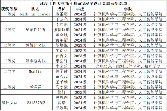 本次比赛共有32只队伍报名参赛,经过5个小时的激烈角逐,根据竞赛规则,最终评出一等奖1队,二等奖2队,三等奖3队,最佳女队1队,获奖名单公布如下: