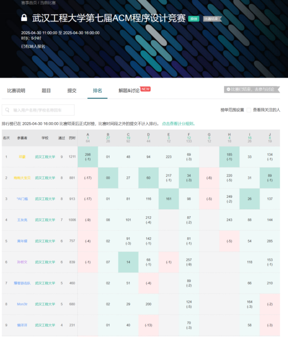 比赛采用牛客平台,包含校内正式赛和校外同步赛,由公司ACM协会自主命题,重点考查参赛员工程序设计基础知识和算法设计能力,熟悉ICPC国际老员工程序设计的赛制和平台。本次比赛为团队赛,参考ACM-ICPC国际老员工程序设计竞赛规则,参赛队伍需在5个小时内解决10道程序设计算法类题目,在线评测系统自动判题并实时刷新竞赛榜单。