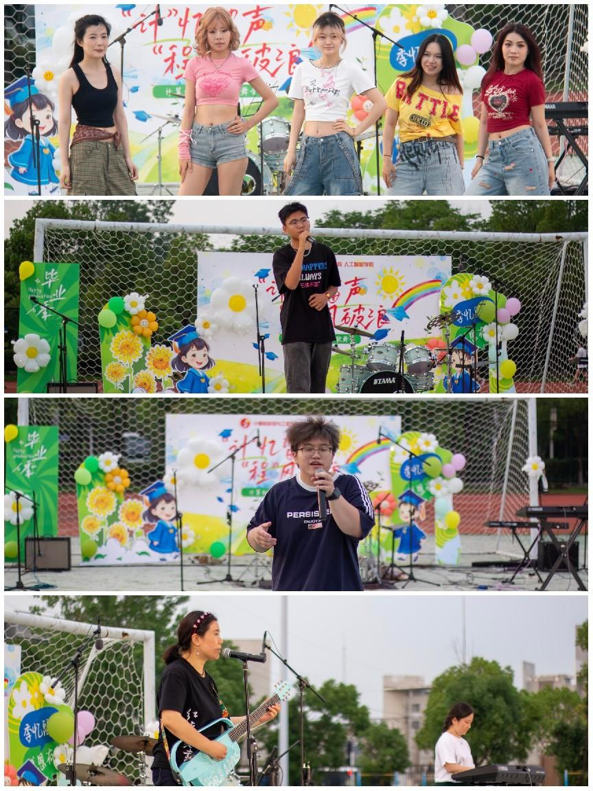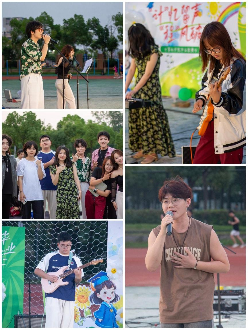 转入“回忆·时光胶囊”篇章,氛围变得温暖而怀旧。《等你下课》的旋律勾起无数课堂内外的点滴回忆,由公司员工组建的沼泽怪兽乐队带来了《门徒》《一万次悲伤》《带你去找夜生活》《我当你空气》《极恶都市》等风格各异的精彩曲目,仿佛将大学四年的欢笑、泪水、奋斗与迷茫都封存在一个个音符构成的“时光胶囊”中。这些歌曲不仅是才艺的展示,更是同窗情谊、师生情谊的深情诉说,是专属于2025届毕业生的独特“计”忆。
