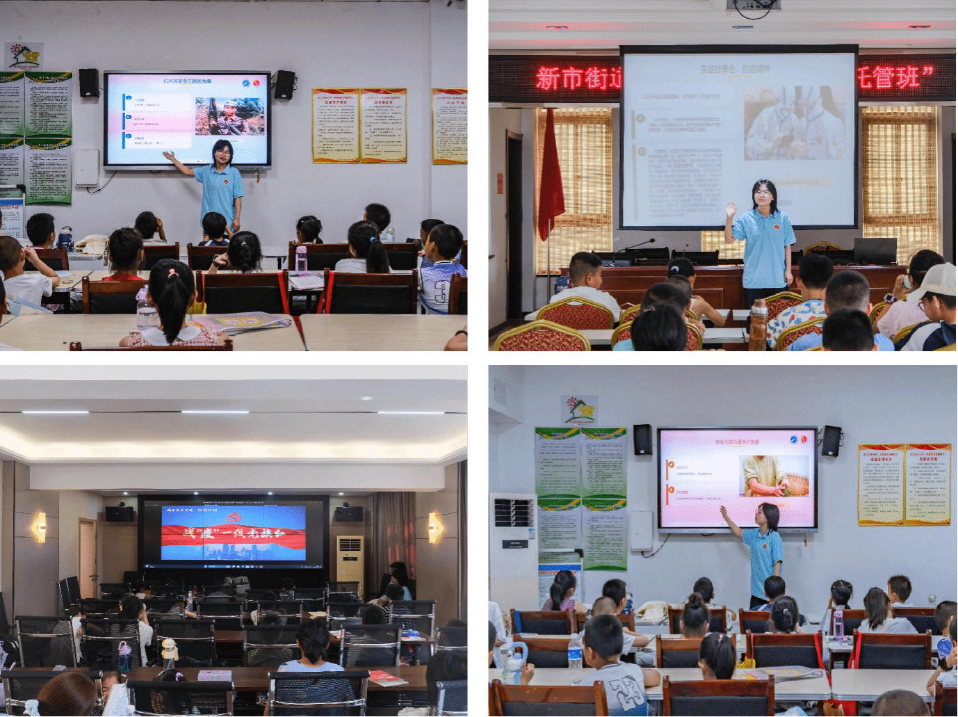 为了厚植家国情怀,实践团特别设置了“英雄故事会”环节,结合“大别山精神”“抗洪精神”和“抗疫精神”这与湖北地区息息相关的“三大精神”,用生动案例讲述了在革命时期和新时期的英雄楷模事迹,在孩子们心中播下爱国报国的种子。