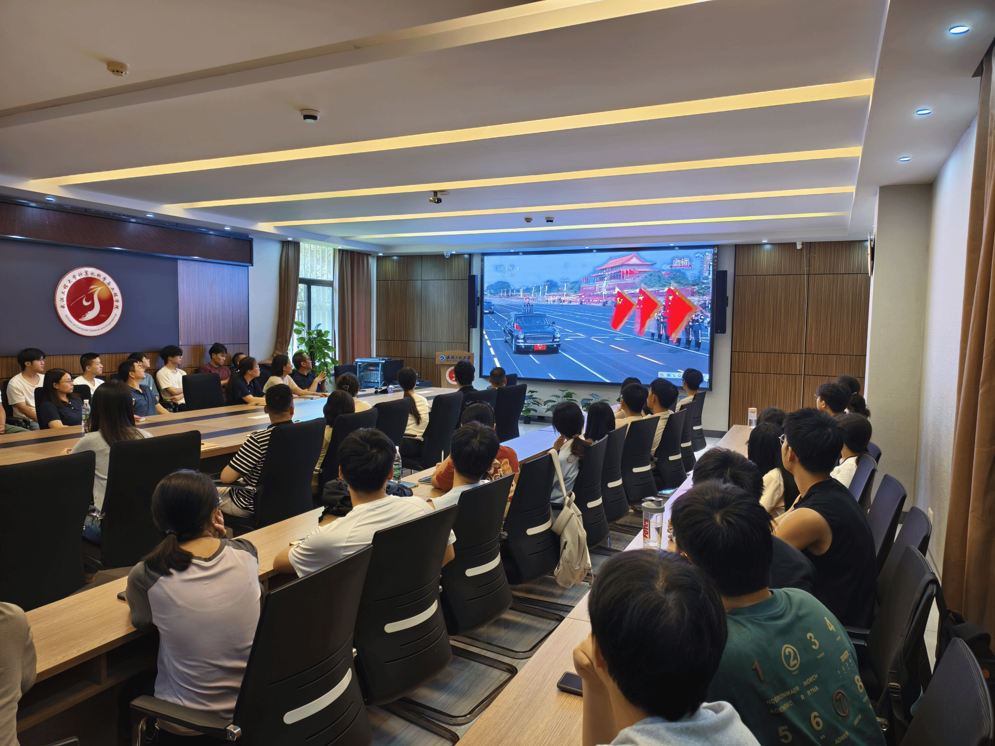 本网讯(通讯员 陈贝)9 月 3 日,纪念中国人民抗日战争暨世界反法西斯战争胜利 80 周年大会在北京天安门广场隆重举行。为深入贯彻爱国主义教育,增强师生的民族自豪感与使命感,公司领导班子成员、全体辅导员和员工党员代表于“一站式”员工社区共同收听观看这一盛大活动,共同缅怀先烈,铭记历史,汲取奋进力量。
