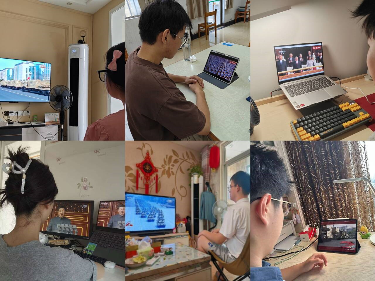 上午9 时,纪念大会正式开始。学院师生代表全体肃立,面向屏幕齐声高唱国歌。习近平总书记在本次大会中发表重要讲话,他回顾了中国人民抗日战争的伟大胜利,强调中国人民坚持走和平发展道路,与各国人民携手构建人类命运共同体。学院师生认真聆听,共同见证这一承载民族记忆的历史时刻,深切感悟伟大抗战精神的时代光辉。在观看阅兵式时,受阅部队英姿飒爽、步伐整齐,新型武器装备一一亮相,充分展现了抗战英雄部队的血脉传承,展示了我国强大的国防实力,师生们被先进的武器装备和整齐划一的受阅方队所震撼,为祖国的强大军事力量而倍感骄傲。