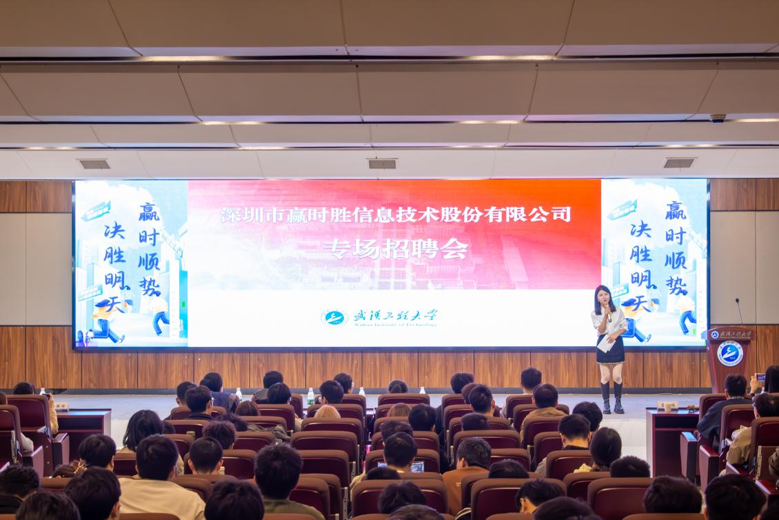 随后,何胜男以“赢时顺势・决胜明天”为主题开展宣讲,从企业实力、岗位需求、成长保障三个维度解读企业“吸引力密码”。此次校招面向两学院开放Java开发工程师、测试工程师、大数据开发工程师等6类技术岗位,工作地点涵盖深圳、武汉等6座城市。