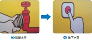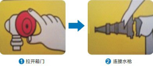 拉开保险插销 握住皮管,将喷嘴对准火苗根部 用力握下手压柄喷射
