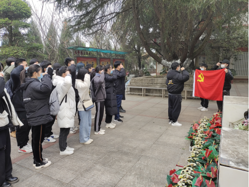 全体人员肃立在革命烈士纪念碑前,集体默哀三分钟,再行三鞠躬,依次向纪念碑敬献鲜花。党员代表李姚舜带领全体人员宣誓,重温入党誓词。