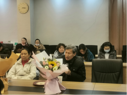 经理卢涛为两位教授颁发纪念品,详细介绍了两位退休教师的主要事迹,对他们为学院建设发展做出的贡献表示感谢,并希望老同志们退休不退志、离岗不离心,继续关心学院的发展。