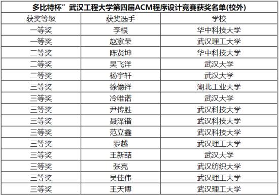 校外参赛队伍中评出一等奖2名,二等奖3名,三等奖10名,获奖名单如下: