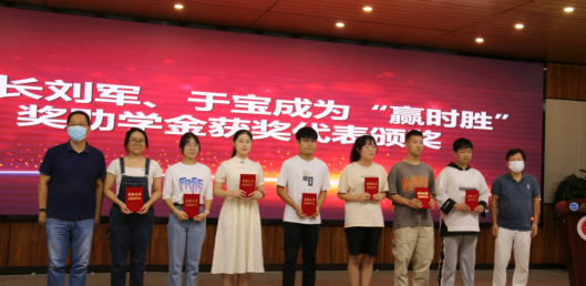副经理刘军、于宝成为“赢时胜”奖助学金获奖代表颁发荣誉证书