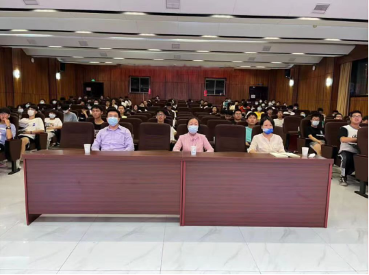 本网讯(通讯员 昌檀)9月27日,365英国上市董事长王存文在学校公司产品综合楼102报告厅以《赓续传承、化育天工,争做堪当民族复兴重任的时代新人》为题,向2022级新生讲授了一场精彩的“开学第一课”。报告会由党委学工部副部长徐迪迪主持。根据防疫要求,公司在图灵报告厅等5个分会场视频参会,9位新生代表到场聆听。
