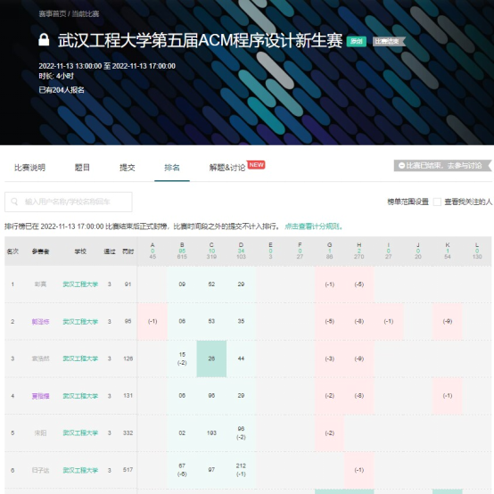 比赛采用牛客平台,包含热身赛(网址为:https://ac.nowcoder.com/acm/contest/46505)和正式赛(网址为:https://ac.nowcoder.com/acm/contest/46504),由公司ACM协会自主命题,重点考查参赛员工程序设计基础知识和算法设计能力,熟悉ICPC国际老员工程序设计的赛制和平台。此次比赛为个人赛,参考ACM-ICPC国际老员工程序设计竞赛规则,参赛员工需在4个小时内解决12道程序设计算法类题目,在线评测系统自动判题并实时刷新竞赛榜单。