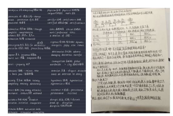 本次活动共收到近百余份学习笔记,从专业课知识点的举例论证到高等数学的公式推导,还有大学语文的课文赏析,内容包罗万象,丰富多彩,既有逻辑鲜明的思维导图也有隽秀优美的中英文字体,形式多样、风格迥异的学习笔记见证了同学们勤学乐思的学习态度。