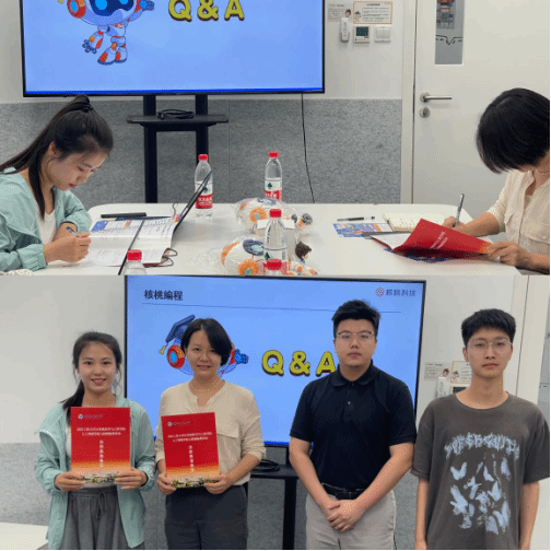 核桃编程人力资源经理刘丽丽详细介绍了公司发展历程、主营业务、晋升通道、实习实训等基本情况。她表示核桃教育作为上市公司背景与实力都较为雄厚,公司的主营课程例如图形课程、Python等非常契合计算机相关专业。双方就企业人才需求情况、就业实训基地建设进行了深入的探讨。