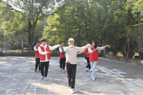 本网讯(通讯员 曹慧洁 李双宁) 为了丰富社区老年人精神文化生活,增强老年群体身体素质,展现老年人积极、健康、向上的精神面貌。10月21日-22日,学院“小码农”先锋队的舞动减压小组走进全新社区和鲁广社区开展“以舞悦心”老年人减压操主题活动,让老年人在健康运动中释放生活压力。