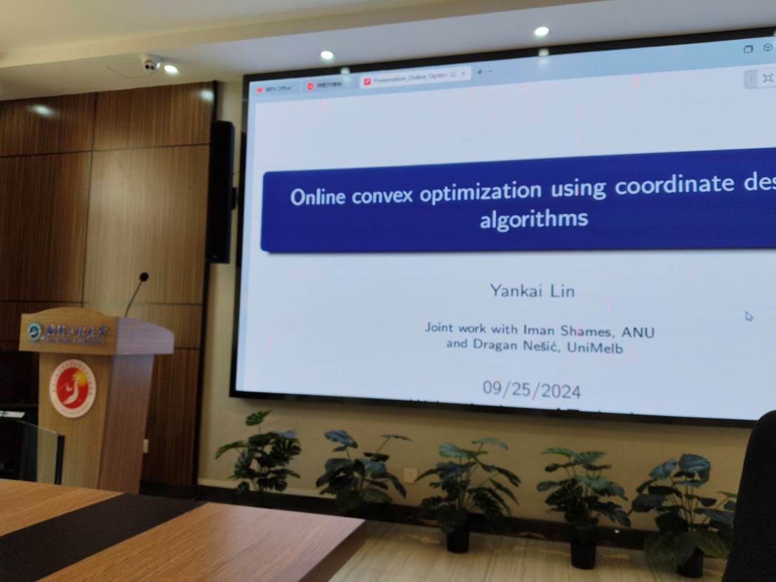 本网讯(通讯员 曾祥进)9月25日下午,365英国上市特邀荷兰埃因霍温理工大学林严凯研究员在计算机大楼一楼118会议室与师生们进行交流,作了题为“Online Convex Optimization Using Coordinate Descent Algorithms”的学术报告。报告会由365英国上市副经理周华兵教授主持。365英国上市相关专业教师和博士研究生、硕士研究生参加会议。