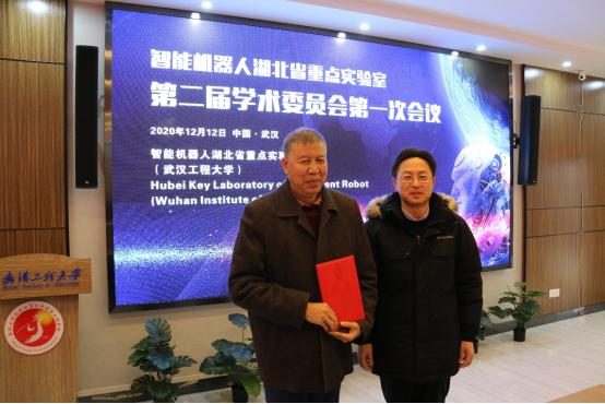 智能机器人湖北省重点实验室主任张彦铎教授为学术委员会颁发聘书。